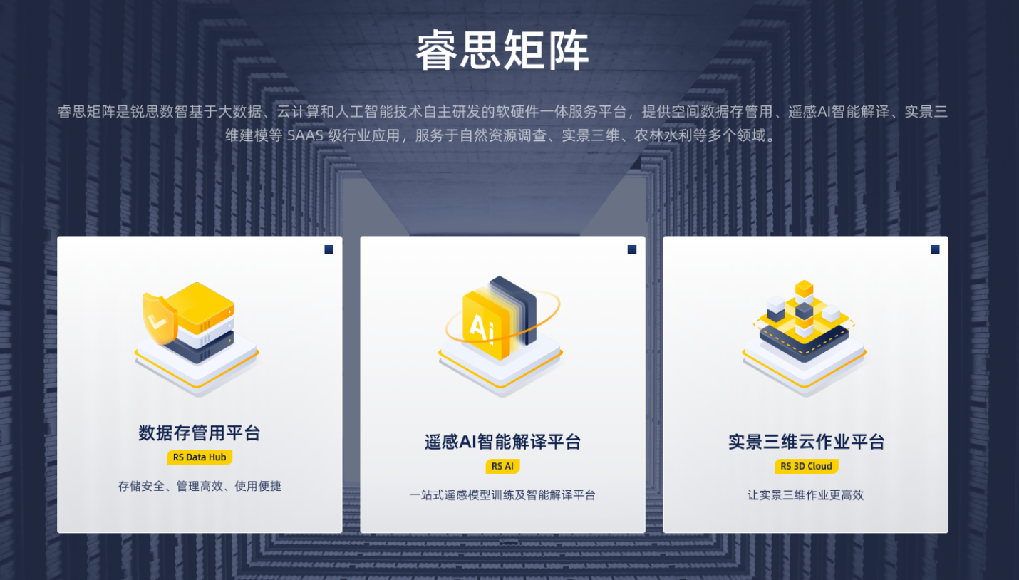 锐思数智(原“西安泽塔云”)是一家致力于遥感、人工智能、云计算技术研究的高科技企业,总部位于西安高新区软件新城。产品涵盖IAAS、PAAS以及人工智能行业应用,以云算力为基础依托,基于遥感时空大数据,结合人工智能及遥感技术,打造以“遥感AI+云算力+数据存管”为核心的产品和技术服务体系,形成了遥感影像智能解译平台、数据存管用平台、实景三维云作业平台等创新型解决方案,助力政府及企事业单位增值提效、提升决策水平,实现数智化转型和升级。