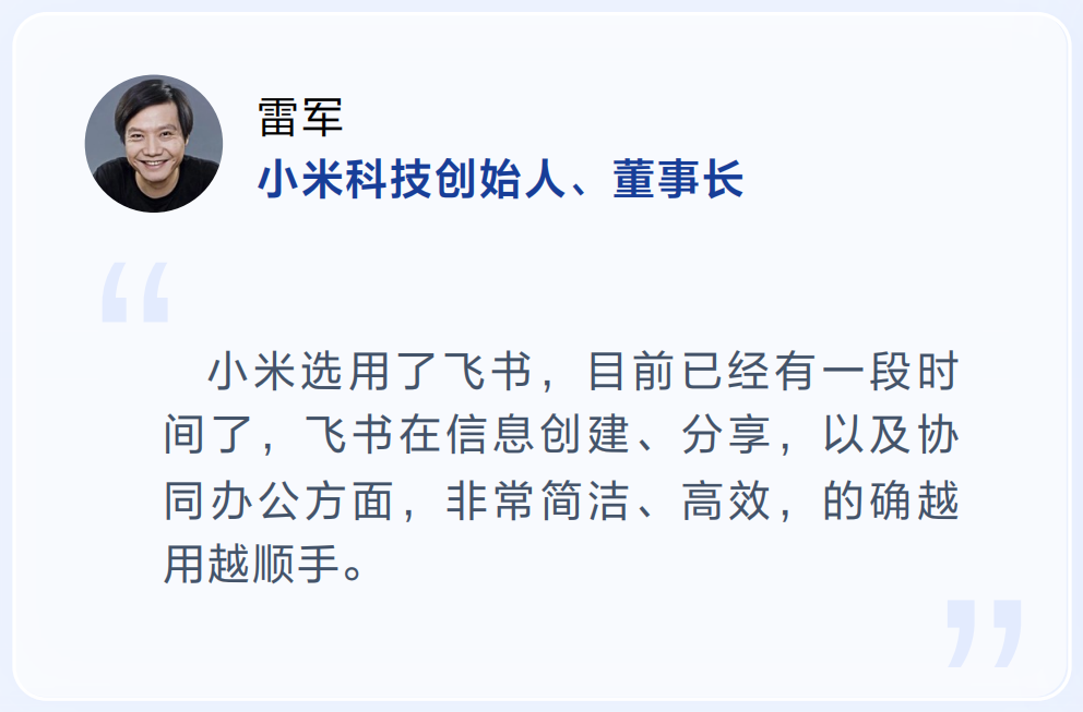 飞书可以让会议更高效、知识高速流转、让目标更清晰、让项目领先一步、打开人才管理的全景视角、连接业务和协作、听见一线炮火声、创造员工服务的全新方式、AI能力让协作更智能、更高效、更开放......从互联网、高科技、消费零售,到金融、制造、汽车、医疗健康康、消费电子等行业,越来越多的先进企业选择飞书。
