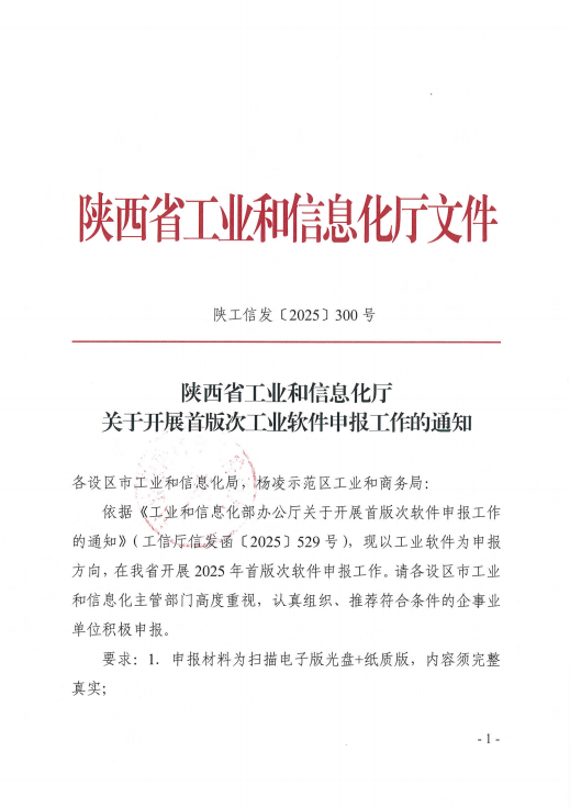 陕西省工业和信息化厅关于开展首版次工业软件申报工作的通知