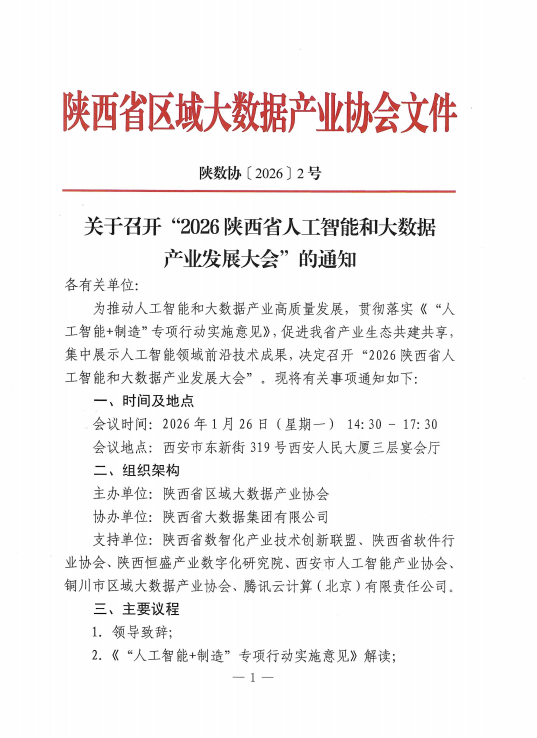 关于召开“2026陕西省人工智能和大数据产业发展大会”的通知