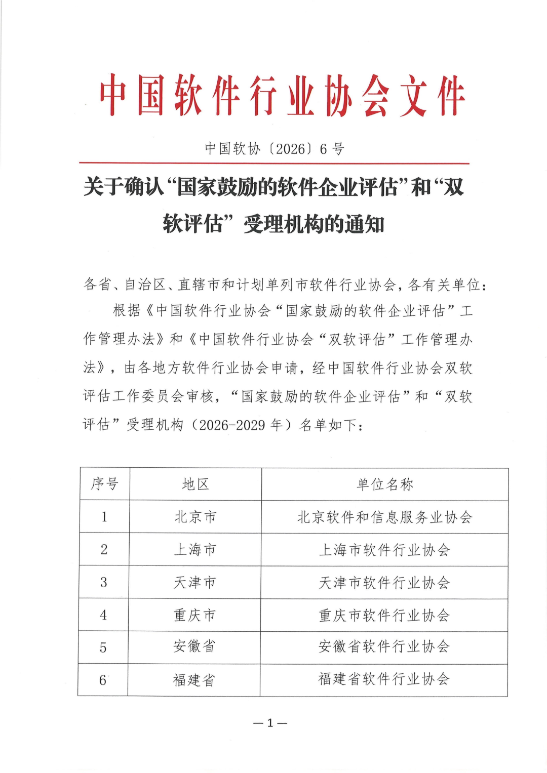 关于确认“国家鼓励的软件企业评估”和“双软评估”受理机构的通知