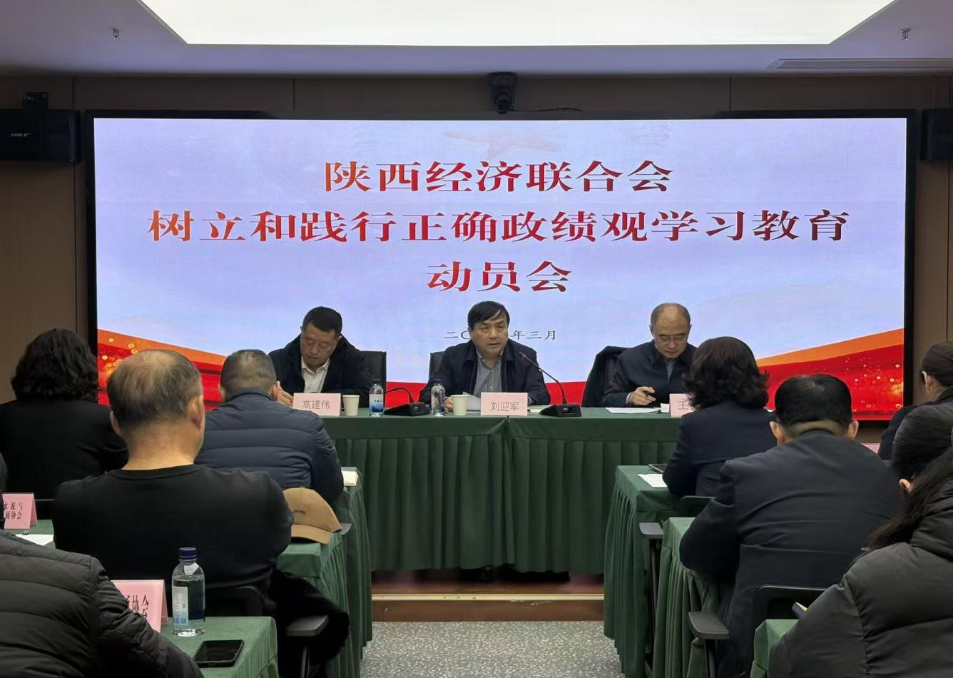 2026年3月13日,陕西经济联合会召开树立和践行正确政绩观学习教育动员会。陕西经济联合会会长刘迎军出席并作动员讲话,副会长王奋利、高建伟出席会议。会议传达学习了中省关于树立和践行正确政绩观学习教育的通知、会议精神,安排部署联合会贯彻落实工作。副会长王奋利主持会议。