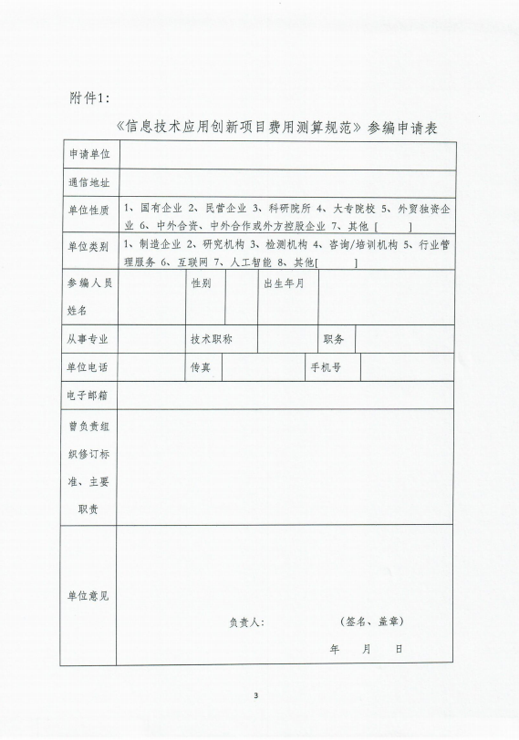 《信息技术应用创新项目费用测算规范》参编申请表.docx