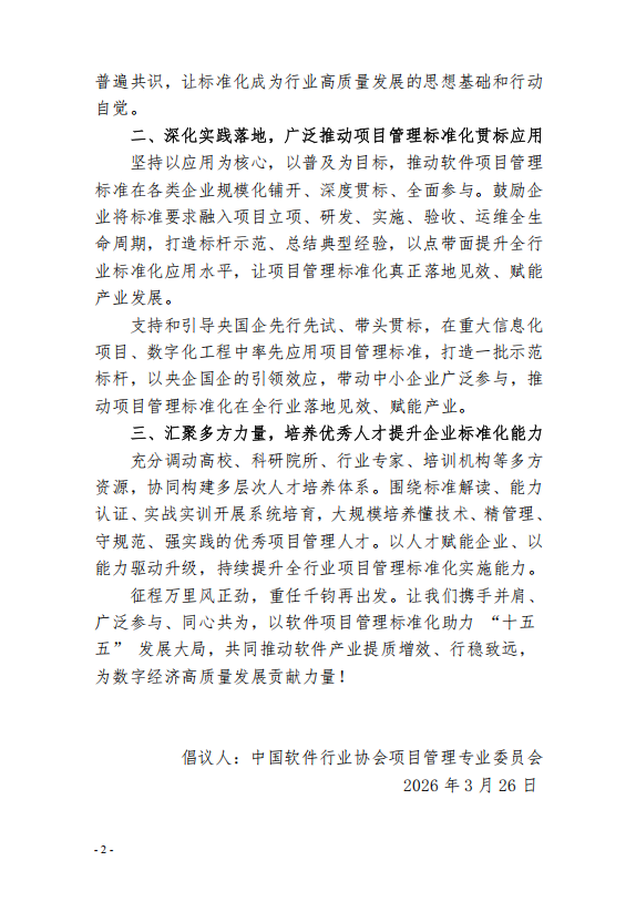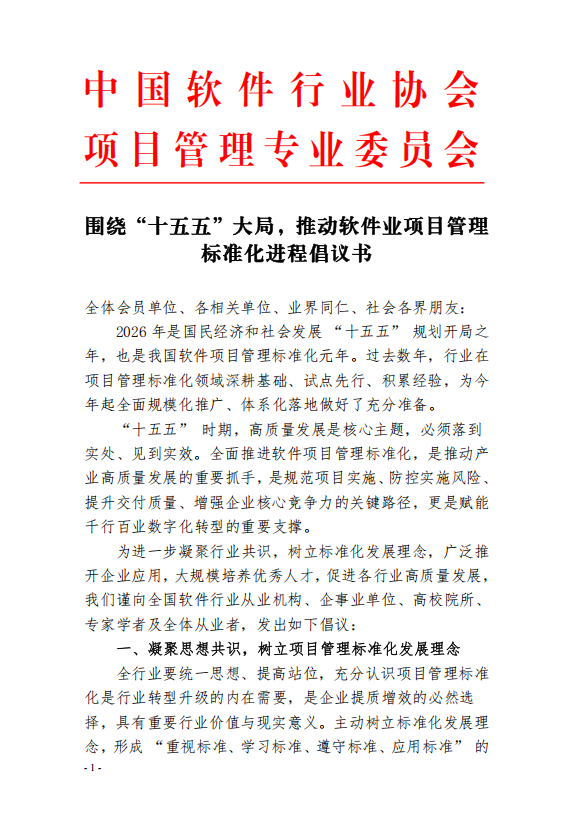 围绕 “十五五” 大局,推动软件业项目管理标准化进程倡议书