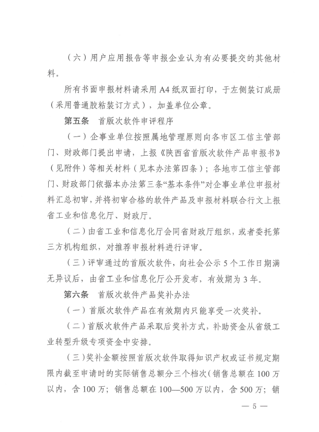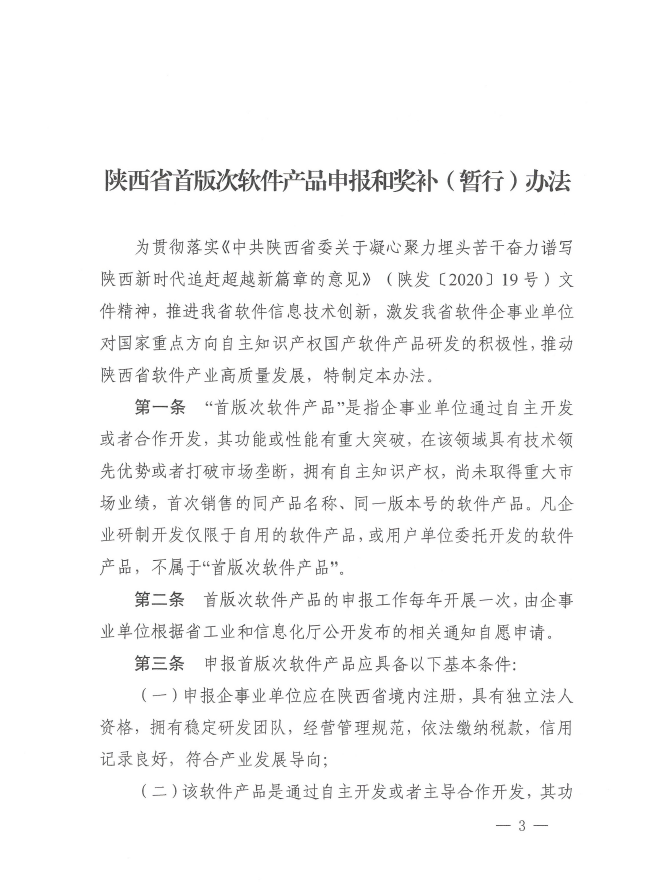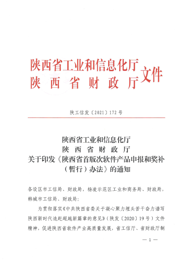 关于印发《陕西省首版次软件产品申报和奖补(暂行)办法》的通知